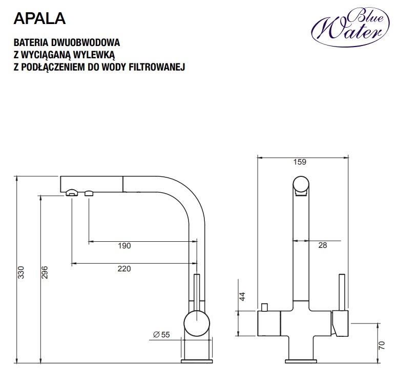 – podłączenie do wody filtrowanej (lewa strona)