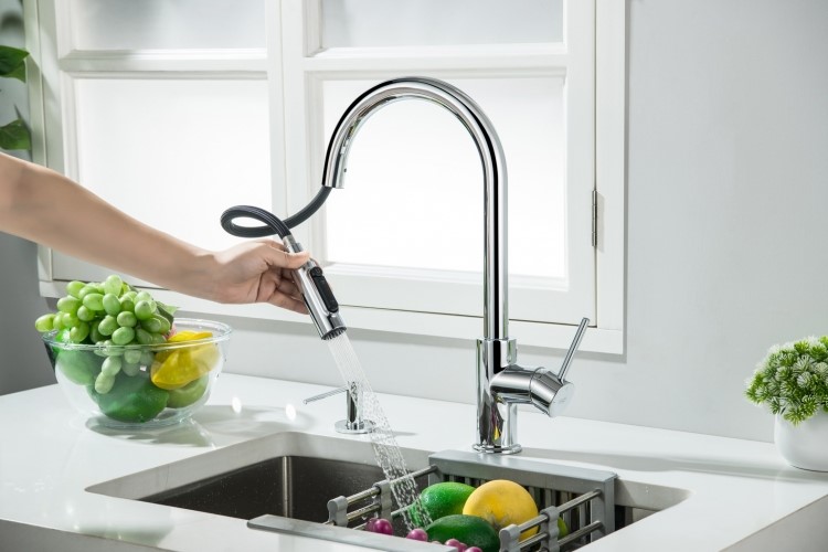 - bateria z wyciąganą wylewką z przełącznikiem strumienia wody