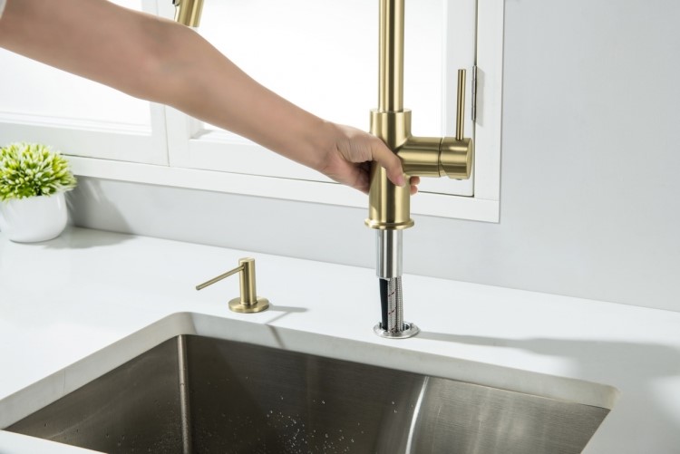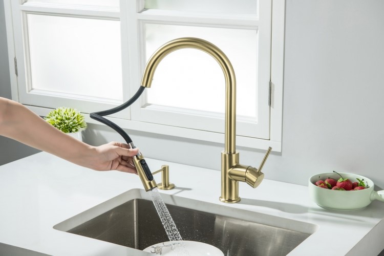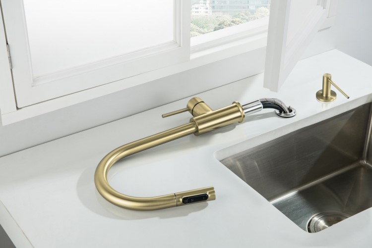 - bateria z wyciąganą wylewką z przełącznikiem strumienia wody