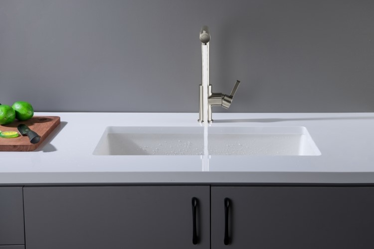 – rączka mieszacza odchyla się do przodu, dzięki czemu można montować baterię pomiędzy zlewozmywakiem podwieszanym a ścianą.