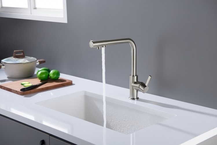 – otwieranie (przełącznik) wypływu wody filtrowanej na końcu wylewki