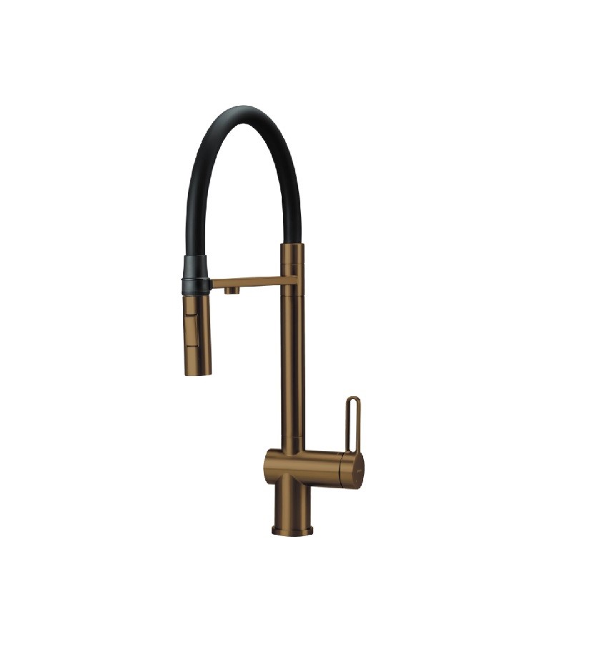 Magnetic to bateria kuchenna, która zachwyca zarówno funkcjonalnością, jak i wyjątkowym designem. Elastyczna wylewka z magnetycznym uchwytem gwarantuje wyjątkowy komfort użytkowania, a jednocześnie dba o estetykę, utrzymując wylewkę zawsze na swoim miejscu. Bateria ma możliwość podłączenia do filtra wody, oferując dostęp do wody pitnej, oraz 2-funkcyjną słuchawkę z opcją strumienia deszczowego i napowietrzonego. Wykończenie w złocie szczotkowanym nadaje jej wyjątkowy, prestiżowy wygląd, który doskonale uzupełnia eleganckie aranżacje kuchenne. Magnetic tworzy harmonijny duet z magnetycznymi zlewozmywakami z tej samej serii, zapewniając spójność i styl.