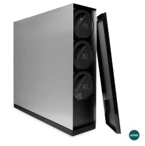 Filtr osmotyczny Midea 600GPD to nowoczesne urządzenie o kompaktowym gabarycie i ogromnych możliwościach filtracyjnych. System wykorzystuje dwie membrany osmotyczne o wydajności 300GPD każda oraz hybrydowy wkład PCB, które gwarantują dokładny proces filtracji dostarczający idealnie czystą wodę w kuchni. Filtr Midea pozbawiony jest zewnętrznego zbiornika wody, a jego konstrukcja została zaprojektowana tak, aby montaż był możliwy nie tylko pod zlewozmywakiem, ale także pod większością szafek kuchennych (w tzw. cokole szafki). Odwrócona osmoza Midea 600GPD wyposażona jest w moduł WiFi i dedykowaną aplikację, która ułatwia monitorowanie jakości wody, stanu wkładów oraz informuje o konieczności przeprowadzenia czynności serwisowych.